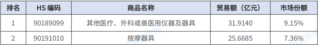 2、2023年5月中国医械进出口贸易额排名前十各商品信息详情