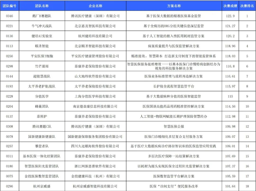 国家医保局基金监管司司长蒋成嘉在关于此次活动接受采访时表示,晋级决赛的18个方案中,有10个方案涉及到医保基金的监管。